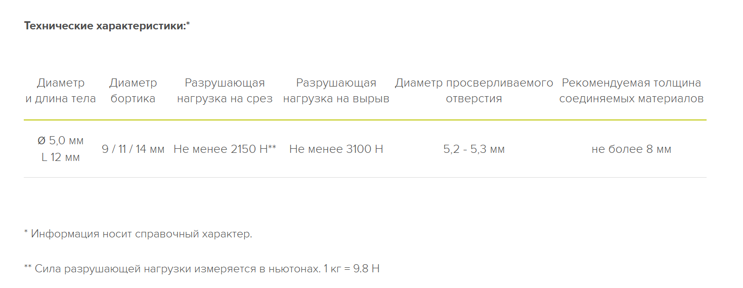 Заклепки с увеличенным бортом применяют:- для соединения тонколистовых, а также мягких или хрупких материалов. Увеличенный борт имеет большую площадь прижатия, и это предотвращает растрескивание и деформацию материалов.